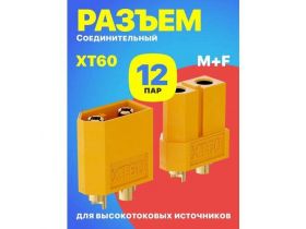 Соединительный разъем XT60 (пара M+F) для высокотоковых источников питания GSMIN комплект 12 пар (Желтый) 102053532203