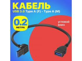 Кабель переходник GSMIN RT-78 (угловой 180 градусов нижний) USB 3.0 (F) - USB 3.0 (M) 0.2 м (Черный) 103604135855