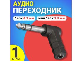 Аудио переходник адаптер угловой GSMIN Maple2 Jack 6.3 мм (M) - mini Jack 3.5 мм (F) джек (Черный) 101857559167