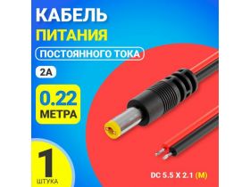Кабель питания постоянного тока DC 5.5 x 2.1 (M) GSMIN JS04 длина провода 22 см 2A (Черный) 101858036279