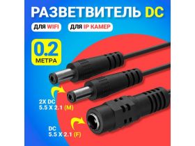 Кабель удлинитель переходник для Wifi и IP камер GSMIN JD-03 DC 5.5 x 2.1 (F) - 2х DC 5.5 x 2.1 (M) (0.2 м.) (Черный) 101857559152