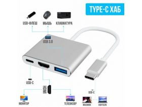 Type-C hub для Macbook, адаптер GSMIN Cray 3 в 1 (USB 3.1 Type-C, USB 3.0, HDMI), Серебристый 101099777627