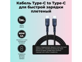 Кабель плетеный Type C 60W 5A прочный в оплетке 1м черный 103042631414