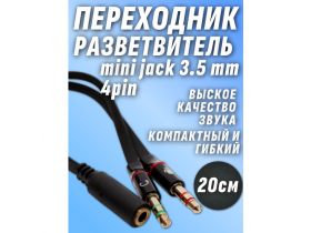 Переходник для гарнитуры объединитель наушники и микрофон 3.5 jack 4 pin (f) 2x3.5 jack 3 pin (m) 102465366117