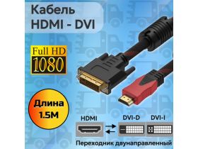 Кабель HDMI DVI D 1.5 метра 1080p full HD 3D плетеный для ПК ноутбуков мониторов , игровых , консолей проекторов и т. д. 101949402967