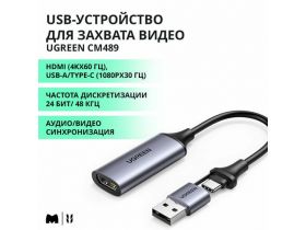 USB-устройство UGREEN CM489 для захвата видео с разрешением 1080P, цвет серый космос (40189) 4303693506
