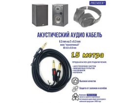 Шнур 6.35мм штекер стерео - 2 x 6.35мм штекер моно "позолоченный" OD4.0x8.0мм 1.5 метра. 101818216490