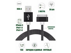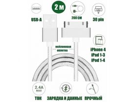 Кабель 2 м 30 pin 2.4А для iPhone 4, iPad 1-3, iPod 1-4 нейлон 4455076222