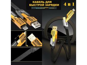 Кабель 4 в 1 для быстрой зарядки PD 65 Вт нейлон USB-A/USB-C - USB-C/Lightning 4582888186