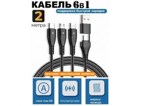 Кабель 6 в 1 для быстрой зарядки 5А 2 м текстиль PD QC 3.0, одновременная зарядка 3 устройств 103554280325