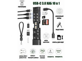 USB-C 3.0 Хаб 10 в 1 с картридером + хранилище карт + кабель 4 в 1 103560947598