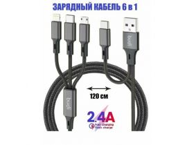Кабель 6 в 1 micro USB, USB-C, Lightning - USB-A, USB-C 2.4 А текстиль 102364861989