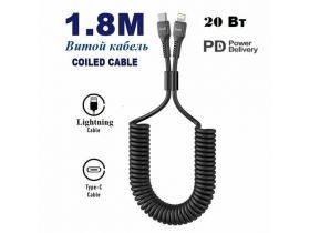 Кабель витой USB-C - Lightning для быстрой зарядки PD и передачи данных, 20 Вт, 3А, 1,8 м 102303083658