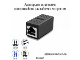 Соединительный адаптер rj45(мама) - rj45(мама), удлинитель для кабеля интернета, черный 103632234622