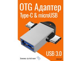 Переходник для флешки type c, microUSB, OTG 2 в 1, iphone 15 pro/android/windows, металлический корпус 4697333445