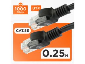 Кабель патч-корд UTP Cablexpert RJ-45, 0,25 м, PP12-0.25M/BK, черный 101213084758