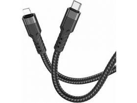 Кабель Hoco U110 iP PD, Lightning (m) - USB Type-C (m), 1.2м, в оплетке, 3A, черный 103660050782