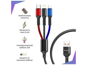 Кабель для зарядки телефона 3 в 1 с разъемами Lightning Type C Micro USB, для быстрой зарядки, 2,4 А, для смартфонов 1,2 м, цветной 101805070418