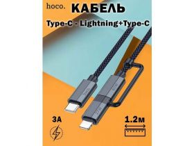 Кабель Hoco U134 Primero 2-in-1 charging data cable Type-C to Type-C / Lightnig (L 1.2M) синий 103738015663