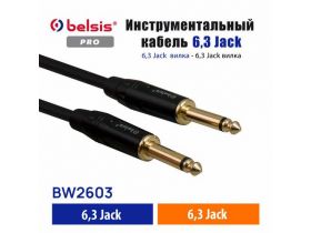 Инструментальный кабель 6,3 Jack Belsis Pro 3 метра, для звуковой карты, гитары и других электромузыкальных инструментов /BW2603 101978018226