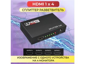 Разветвитель MRM Power EDH12, на 4 порта HDMI с усилителем до 30м + блок питания, черный 101161554465