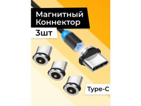 Комплект 3 шт. Магнитный коннектор Type-C для кабеля / Переходник USB Type-C на кабель для телефона / Черный 102745832124