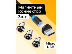 Комплект 3 шт. Магнитный коннектор Micro USB для кабеля / Переходник на кабель Micro USB / Черный 102745788617