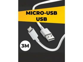 Кабель Micro USB для зарядки (3м) / Провод Micro USB / Белый 102001847806