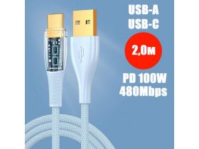 Кабель PALMEXX USB-A to USB-C, PD 100W, длина 2.0м, голубой 102341339212