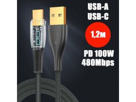 Кабель PALMEXX USB-A to USB-C, PD 100W, длина 1.2м, чёрный 102340721564