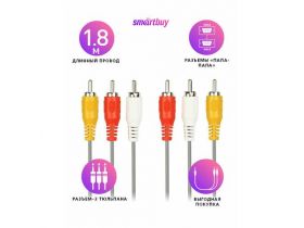 Кабель соединительный SmartBuy 3 x RCA (M) - 3 x RCA (M), в пакете, серый, 1.8 м 101239153268