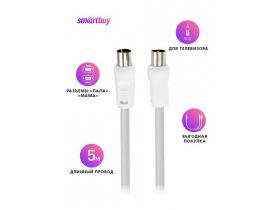 Антенный кабель SmartBuy, разъемы F-М-типа, длина 5 м, круглый, белый 102961278008