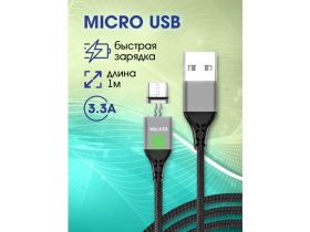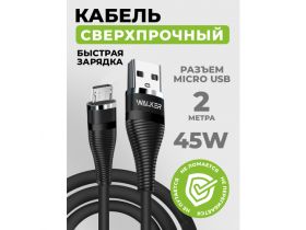 Кабель с быстрой зарядкой USB - micro USB, WALKER, WC-930, индикатор и передача данных, провод микро юсб, шнур micro usb для зарядки телефонов, черный 101766551529
