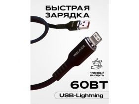Кабель USB с быстрой зарядкой и передачей данных, WALКЕR, C795, Lightning, 1м, 3.3А, мягкий силиконовый провод лайтинг для зарядки айфона, черный 4472766505