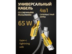 Кабель USB/Type-C-Type-C/Lightning, 65W, 4в1, PD/QC, кабель для айфона, как ugreen, hoco, baseus, нейлон, черно-желтый 103626958155
