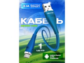 Кабель для зарядки с быстрым зарядом, WALKER C735, 3.1 А в силиконовой оплетке, разъём USB-Micro, 1 м, шнур usb питания для телефона андроид, синий 101493432733