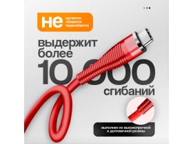 Кабель для зарядки WALKER C735, С БЫСТРЫМ ЗАРЯДОМ 3.1 А в силиконовой оплетке, разъём Type-C, красный, 1 метр, шнур usb питания для телефона андроид 101493464732
