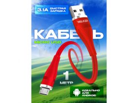 Кабель для зарядки с быстрым зарядом, WALKER C735, 3.1 А в силиконовой оплетке, разъём USB-Micro, 1 м, шнур usb питания для телефона андроид, красный 101493432734