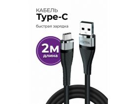Кабель для зарядки WALKER C735, С БЫСТРЫМ ЗАРЯДОМ 3.1 А в силиконовой оплетке, разъём Type-C, черный, 2 метра, шнур usb питания для телефона андроид 101493464730