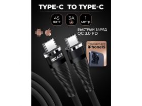 Кабель Type-C-Type-C. быстрая зарядка и передача данных, WALKER, C735, черный, 45W 3.1А, 1м, провод для телефона, провод type c, провод для айфона 102393405529