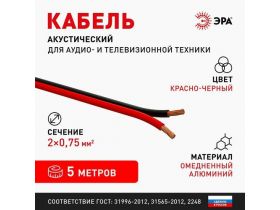 Акустический кабель 2х0,75 мм2 красно-черный, 5 м ЭРА 103627643109