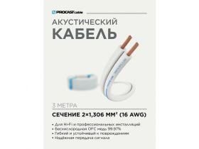 Инсталляционный белый акустический кабель 2х1,306mm² PROCAST Cable SWH 16. OFC 3м 101777849429