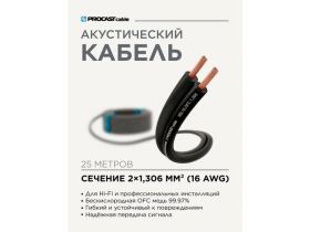Акустический кабель инсталляционный черный 2 х 1,306mm² PROCAST Cable SBL 16. OFC 25м 101777849469