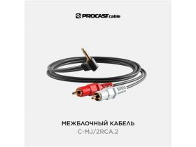 Межблочный кабель с угловым разъемом 3,5mm miniJack TRS-2RCA(male) PROCAST cable C-MJ/2RCA.2 длина 2m, черный 101781263410
