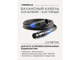 PROCAST cable XLR(m)/XLR(f).2.5 Профессиональный балансный звуковой кабель XLR(male) / XLR(female), длина 2,5 м 101784903751