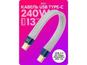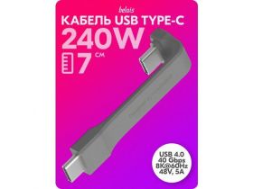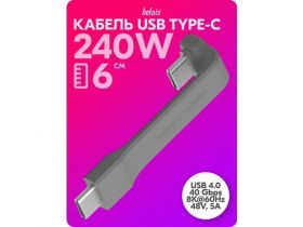 Кабель короткий сверхскоростной TYPE-C Thunderbolt «belais» (40 Gbps, 240W, 8K@60Hz, 48V, 5A, USB 4.0, 13 см, серый) #22872 103169718581