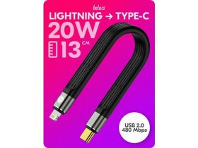 Кабель короткий сверхскоростной Lightning — TYPE-C «belais» (480 Mbps, 20W, USB 2.0, 13 см, чёрный) #22384 102567507408