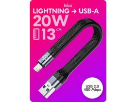 Кабель короткий сверхскоростной Lightning — USB A «belais» (480 Mbps, 20W, USB 2.0, 13 см, чёрный) #22385 102567467026