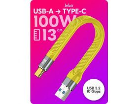 Кабель короткий сверхскоростной USB A — TYPE-C «belais» (10 Gbps, 100W, USB 3.2, 13 см, жёлтый) #22300 102481445374