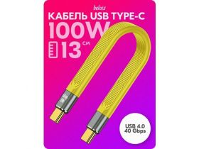 Кабель короткий сверхскоростной TYPE-C Thunderbolt «belais» (40 Gbps, 100W, USB 4.0, 13 см, жёлтый) #22299 102481445373